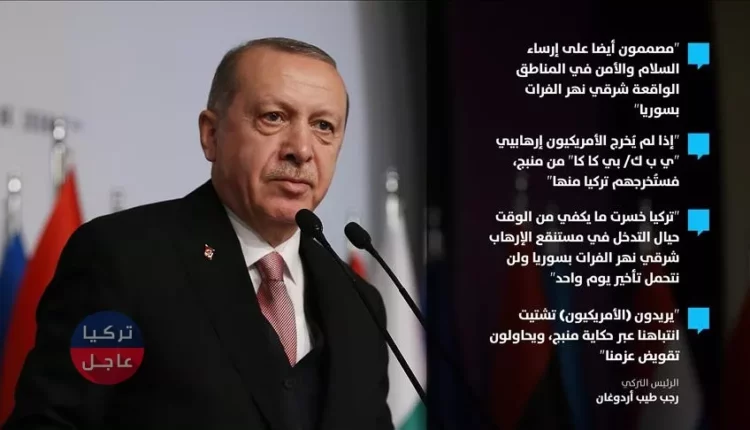 قال الرئيس التركي رجب طيب أردوغان، الجمعة، إنه “إذا لم يُخرج الأمريكيون إرهابيي ي ب ك / بي كا كا من منطقة منبج، فستُخرجهم تركيا منها”.