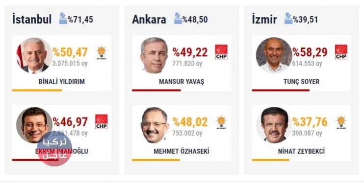 النتائج الأولية في “إسطنبول” بعد فرز 71% من الصناديق في الانتخابات المحلية: