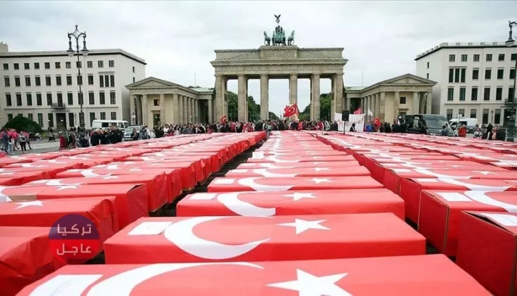 وأشرفت جمعية “حجيوات” للفن والثقافة التابعة للجالية التركية في ألمانيا، على تنظيم الفعالية، حيث شهدت وضع 251 تابوتًا ملفوفة بالعلم التركي وعليها أسماء الشهداء الذين ارتقوا خلال التصدي لمحاولة الانقلاب أمام بوابة براندنبورغ التاريخية والسفارة الأمريكية في برلين.