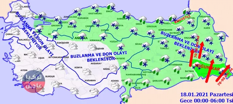 وبدورها قالت مديرية الأرصاد الجوية التركية، أن تركيا ستتعرض لمنخفض جوي جديد من الأمطار والثلوج بدءا من الخميس المقبل.