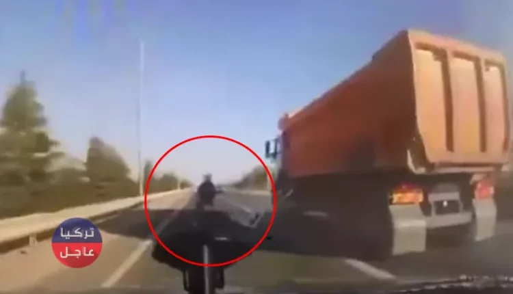 انتشر مقطع فيديو وبشكل واسع على منصات التواصل الاجتماعي في تركيا, يصور ماقام به سائق شاحنة بسائق دراجة نارية.