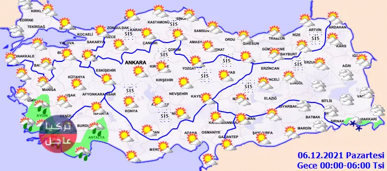 حالة الطقس في تركيا يوم الإثنين 06-12-2021 .. خريطة الأمطار