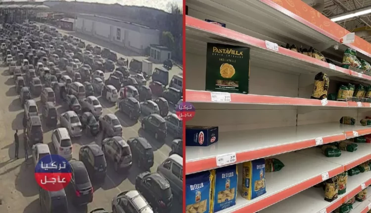 انتشرت صور مخيفة من ولاية أدرنة إلى الشمال الغربي من تركيا, تُظهر الماركيتات فارغة وطوابير المواطنين على حدودها تصل إلى مئات الأمتار.