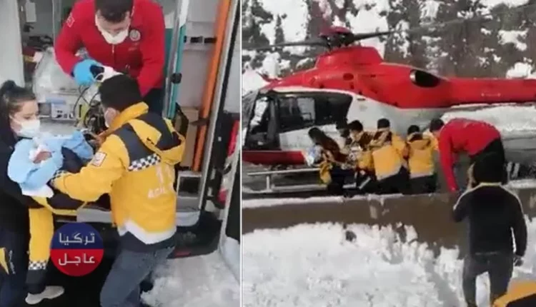 تركيا تنقذ طفل سوري علق على طريق غازي عنتاب – أضنة بالطائرة المروحية بعدما تقطعت السبل بالسيارة التي تحمله الى غازي عنتاب.