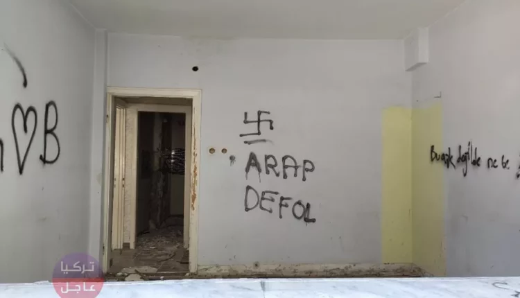 وبحسب ما ترجمه “موقع تركيا عاجل”, نقلاً عن الإعلام التركي, فقد قام مجهولون عنصريون بكتابة عبارات عنصرية ضد السوريين على جدران المنازل التي يقطنوها في منطقة الفاتح بإسطنبول.