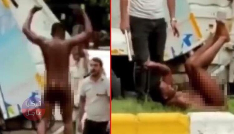 شوهد مواطن أجنبي يمارس الرياضة عارياً في منتصف الشارع في اسطنبول إسنيورت ناظم حكمت بوليفارد.