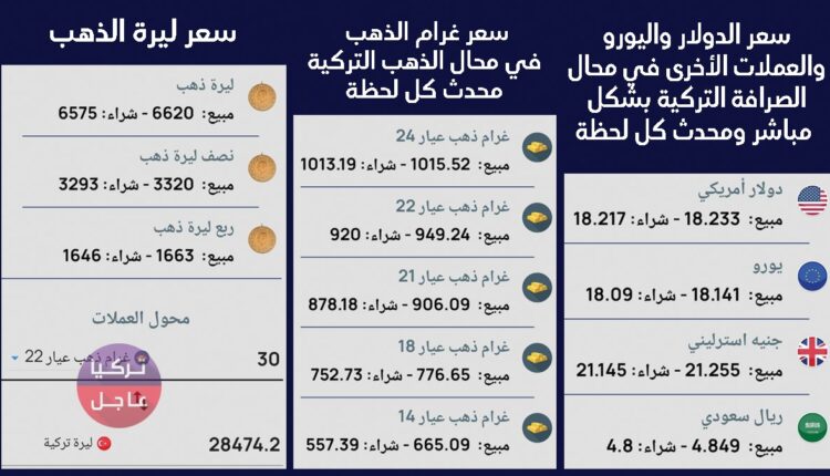 طريقة متابعة لوحة أسعار الذهب وأسعار الدولار واليورو المباشرة في محال الذهب والصرافة التركية