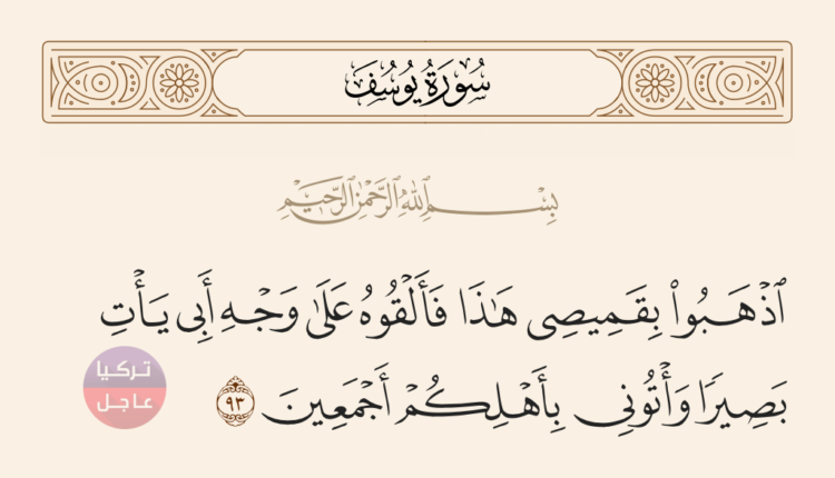 قال تعالى: “ولما فصلت العير قال أبوهم إني لأجد ريح يوسف لولا أن تفندون، قالوا تالله إنك لفي ضلالك القديم، فلما أن جاء البشير ألقاه على وجهه فارتد بصيرا قال ألم أقل لكم إني أعلم من الله ما لا تعلمون” صدق الله العظيم (يوسف 96 )