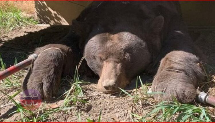 قام خمسة من مسؤولي الحياة البرية باستخدام سهم المهدئ للقبض على الدب ، الذي تم إعطاؤه دواء عكسي بعد فحص صحي شامل.