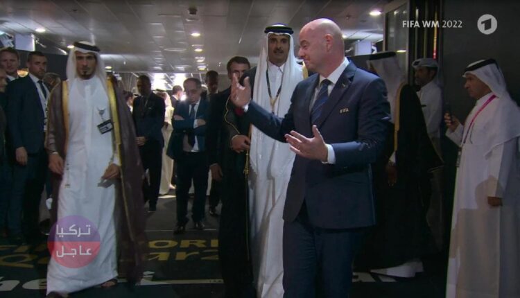 لكن أمير قطر الشيخ تميم بن حامد آل ثاني لم يسمح لماكرون بالسير أمامه. انعكست تعابير وجه ماكرون وإنفانتينو ، اللذين صُدما ، في الكاميرات.