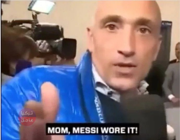 وظهرت الربطة عندما كان ميسي في غرفة تبديل الملابس بعد فوز منتخب بلاده بكأس العالم على حساب فرنسا يوم الأحد الماضي.