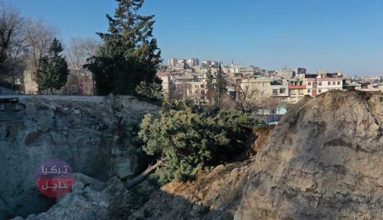 تشكل صدع عميق في حديقة Aydinbaba ، الواقعة في شارع Derinçukur في حي enyurt ، في منطقة ahinbey المركزية ، نتيجة للزلزال.