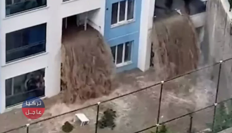 شاهد السيول تخرج من شرف المنازل المرتفعة في العاصمة التركية أنقرة