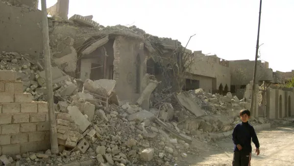 خلال معركة الفلوجة الأولية في أوائل عام 2004، والمعروفة باسم عملية العزم اليقظ، قُتل 38 جنديًا أمريكيًا، وأصيب أكثر من 90 آخرين، وقُتل حوالي 200 من المتمردين العراقيين أو مقاتلي القاعدة المزعومين، كما قُتل مئات المدنيين. طفل صغير يمر بالقرب من المباني المدمرة في 4 كانون الثاني/يناير 2005، في مدينة الفلوجة المدمرة، على بعد 50 كيلومتراً غرب بغداد. (غيتي)