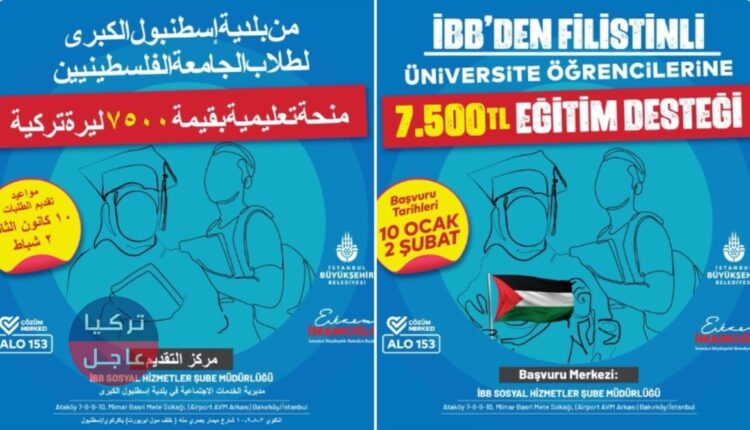 قررت بلدية إسطنبول (İBB) توسيع نطاق المساعدة الجامعية لتشمل الطلاب الفلسطينيين الذين يتلقون تعليمهم في تركيا.
