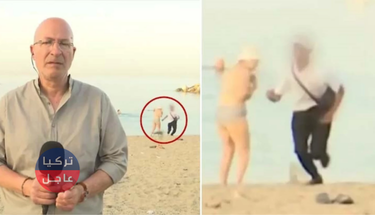 خلال بث مباشر شاهد ما فعله شخص بامرأة على شاطئ البحر في اليونان