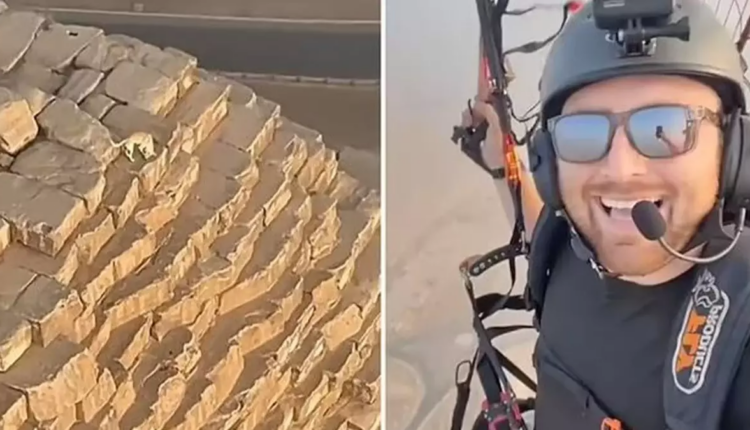مغامر مظلي يكتشف أمراً غريباً على رأس هرم الجيزة في مصر