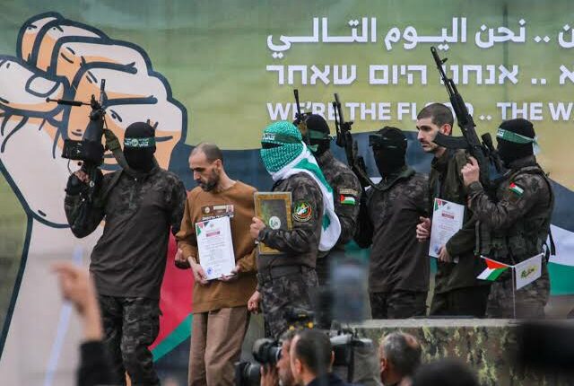 وتعتبر هذه الأحداث والتطورات خطوة هامة في النزاع المستمر بين إسرائيل وحماس. في وقت تشهد فيه المنطقة استمرارًا في المعارك والهجمات العسكرية، أظهرت حركة حماس قوتها الرمزية من خلال إقامة منصة حملت شعار “نحن الطوفان نحن اليوم التالي”، مع علم فلسطين داخل قبضة يد، وتزينت صور قيادات حماس البارزة الذين قتلهم الجيش الإسرائيلي خلال الحرب.