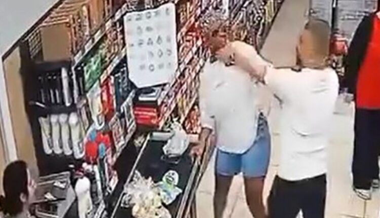 سرعان ما تصاعد الجدال بين الطرفين، ليتحول إلى مشادة جسدية، إذ قام الرجل بالتوجه نحو المرأة بعد أن دفعته بيديها، فبادر بتوجيه لكمة قوية إلى وجهها، وسط ذهول المتسوقين. وشوهد أحد موظفي المتجر وهو يهرع لإنقاذ الطفلة الصغيرة التي كانت بجانب والدتها، حيث أمسك بها من يدها وأبعدها عن موقع الشجار بسرعة.