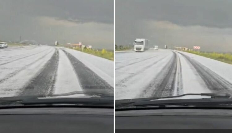 وبحسب ما ترجم موقع تركيا عاجل، فقد تخلّت الأمطار الغزيرة التي كانت سائدة عن مكانها لعاصفة برد مفاجئة، ما أدّى إلى تراكم طبقات كثيفة من البَرَد على الطرقات والمزارع.