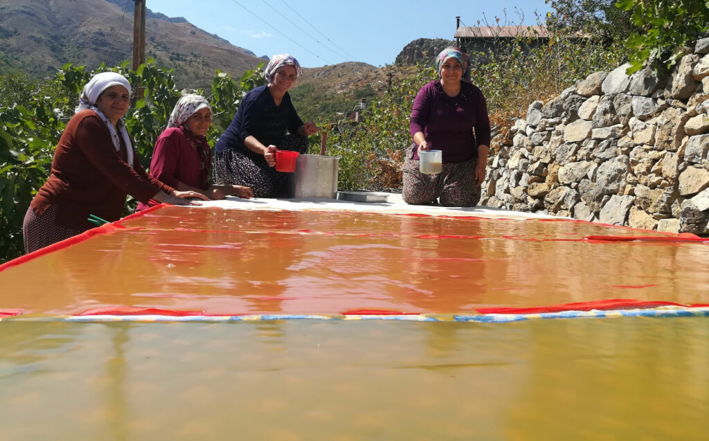 قالت وسائل الإعلام التركية اليوم، إن بلدة كمالية التابعة لولاية أرضروم تحولت إلى مركز إنتاج جماعي للبيستيل (رقائق التوت المجفف)ودبس التوت، في موسم سنوي يشارك فيه الجميع، لكنه يعتمد بشكل أساسي على النساء اللواتي يواجهن مشقة العمل بإصرار وحب.